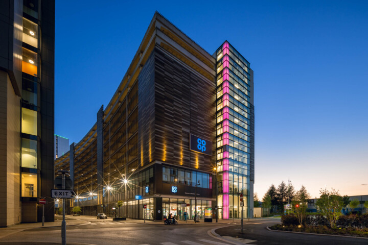 The MediaCityUK Multi-Storey Car Park stands as a sentinel along the Manchester Ship Canal in Salford Quays. From here, the view is breathtaking, offering a panorama of Salford’s iconic buildings.